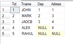 left join Department d on t.Dep=d.Depid