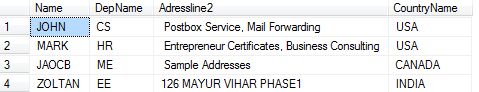 select t.Name,d.DepName,a.Adressline2,c.CountryName from Teacher t