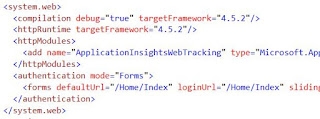 <forms defaultUrl="/Home/Index" loginUrl="/Home/Index" slidingExpiration="true" timeout="2880"></forms>
