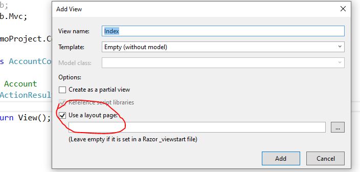 If you checkmark “Use Layout” option then it automatically creates Master _Layout.cshtml View in the “Shared” folder and also create bootstrap files in your project.