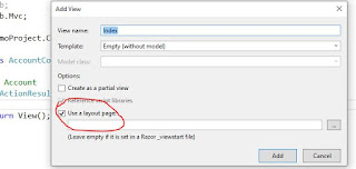 Step 5-Now Let’s create a View for each action method, right-click on each ActionMethod and click on add View with Use Layout Check selected.