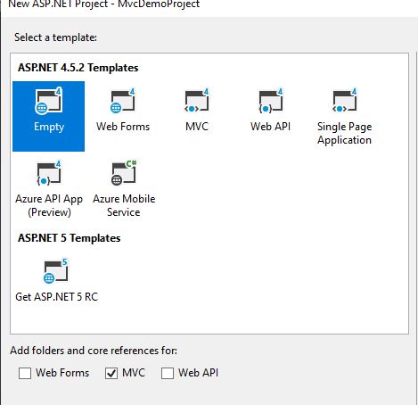 Step 1-Open Visual Studio and create an Empty MVC Project